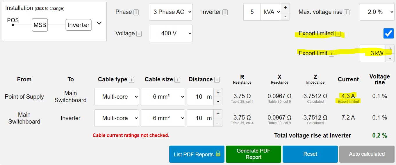 Hi Reader I am just letting you know. I added two options to optimise the earth cable sizing for high current installations in the Cable Size Calculator. Option: Ignore table 5.1 sizes Ignore earth sizes specified in Table 5.1 in AS/NZS 3000. Earth size will be based on fault current and loop impedance only. This option is available when: Parallel single-core cable groups are used. Check fault rating and Check loop impedance are enabled. The calculated earth size is ≥ 120 mm2 (copper) or ≥...